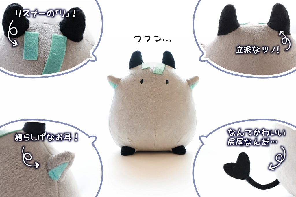 リスナーバッチや立派な角、尻尾にもこだわり、一緒に生活をしやすいぬいぐるみサイズになりました!ぜひお家にお迎えして一緒に配信を見ませんか♪