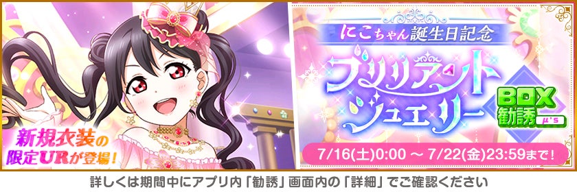 株式会社ブシロード(本社:東京都中野区、代表取締役社長:木谷高明)は、KLab株式会社(本社:東京都港区、代表取締役社長:森田英克)と共同開発いたしましたスマートフォン向けアプリ『ラブライブ!スクールアイドルフェスティバル』(以下、スクフェス) においてμ’s矢澤にこ誕生日記念キャンペーンの開催をお知らせいたします。
