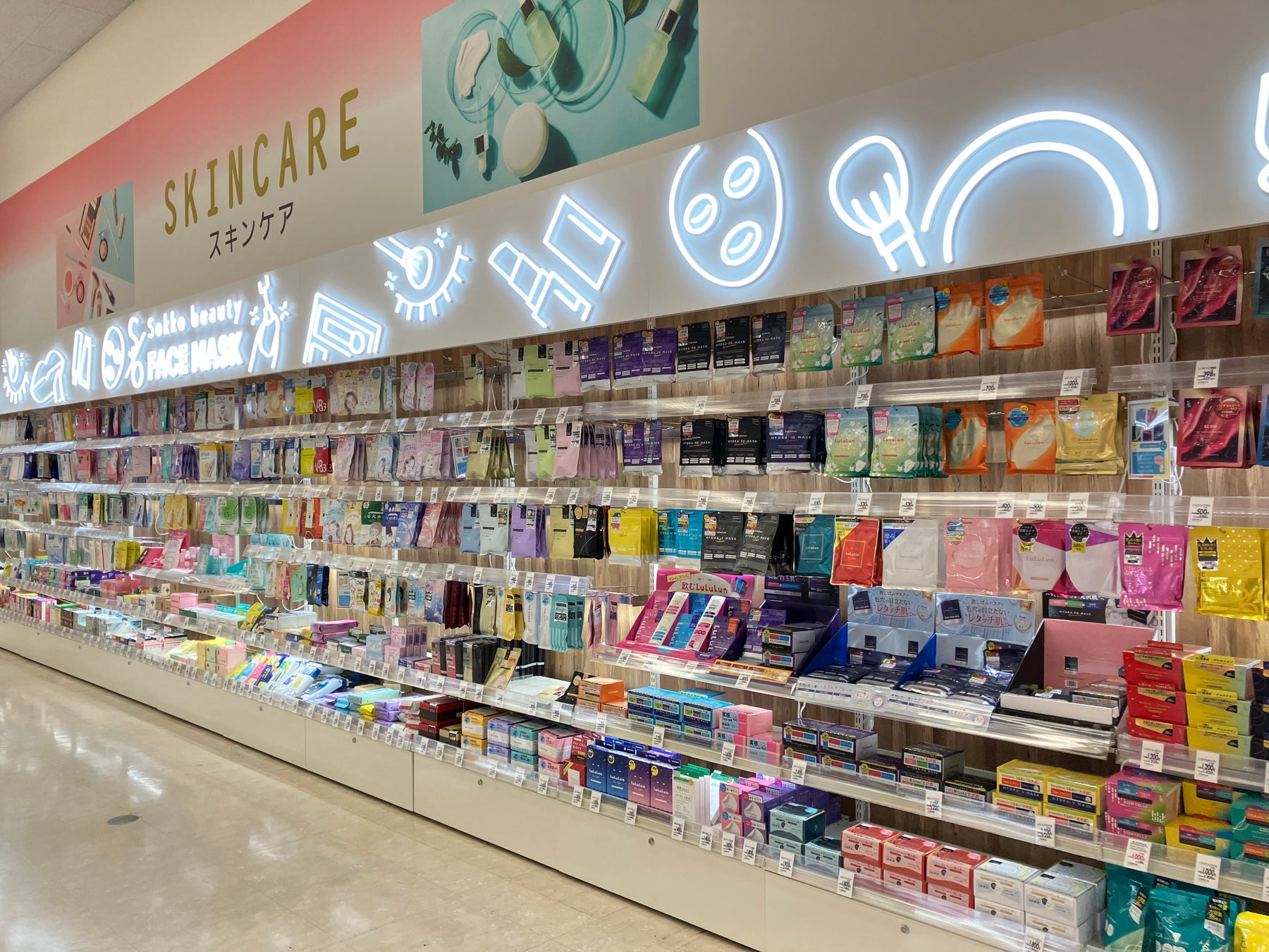 需要が高いフェイスマスクは壁一面に展開。“Sokko beauty”など約250種類を取り揃えてお客さまが楽しんで選べる売場を演出します。さらに、美容雑貨に限らず“チュチュアンナ”のソックスを新たに展開し、バラエティ豊かな売場を提供します。