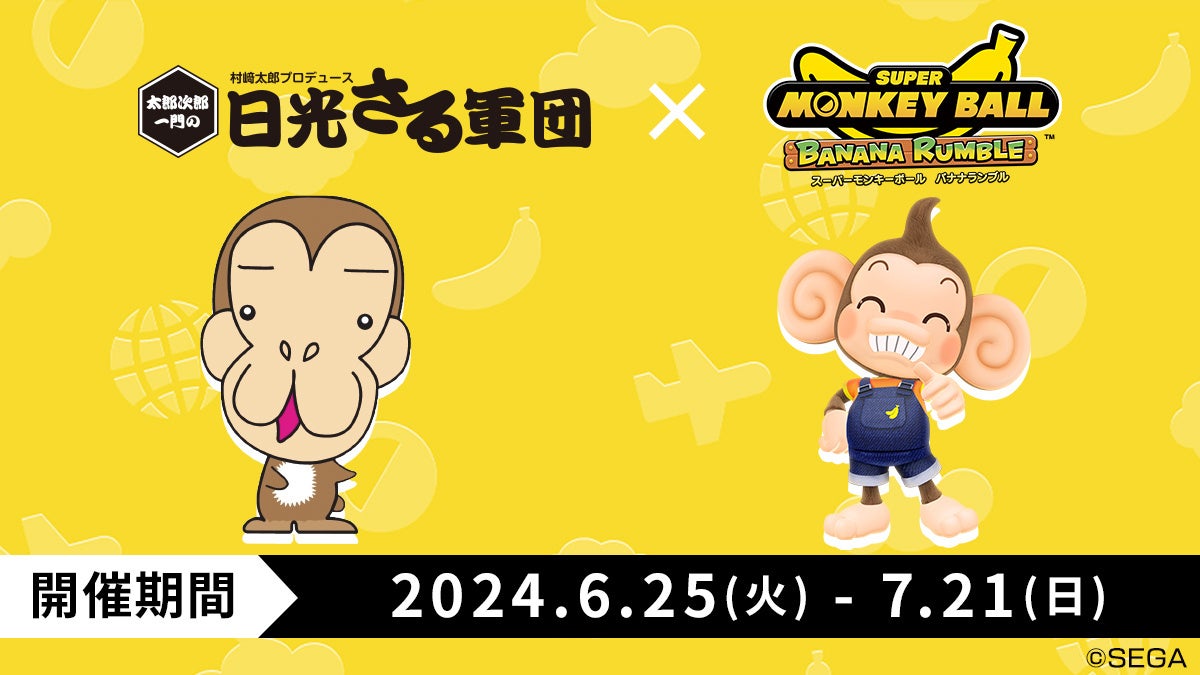 『スーパーモンキーボール バナナランブル』おさるランド[日光さる軍団]、「ファンキーバナナ!!」とのコラボ決定!