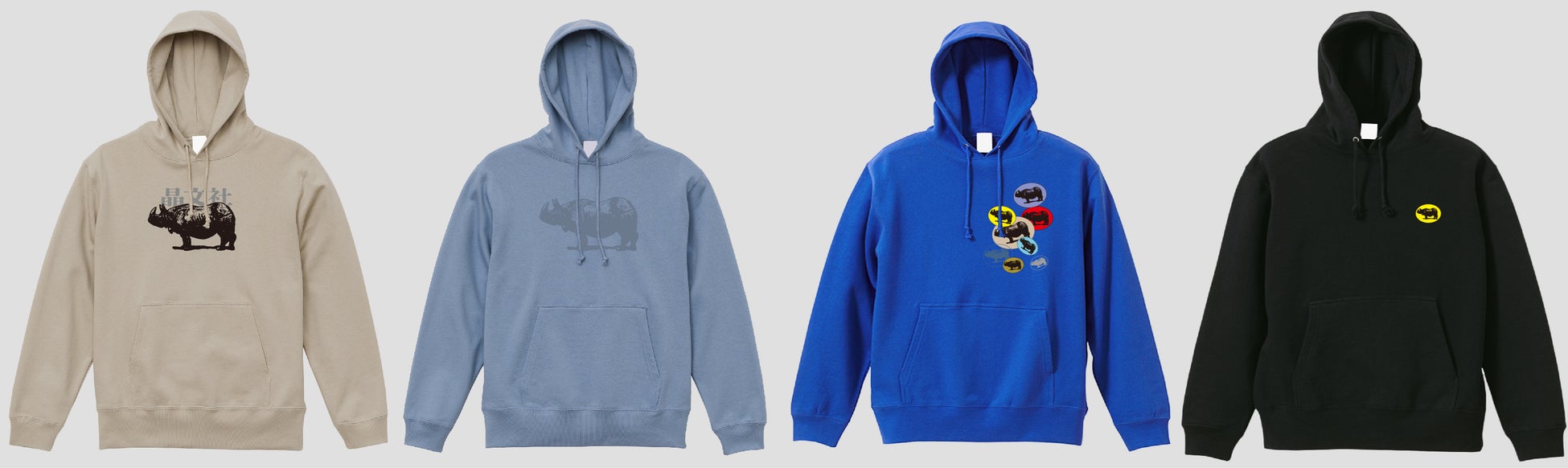 晶文社のロゴにもある犀をモチーフにしたアイテムを販売いたします。全4種のデザインで、それぞれに犀があしらわれ、晶文社ならではのデザインとなりました。