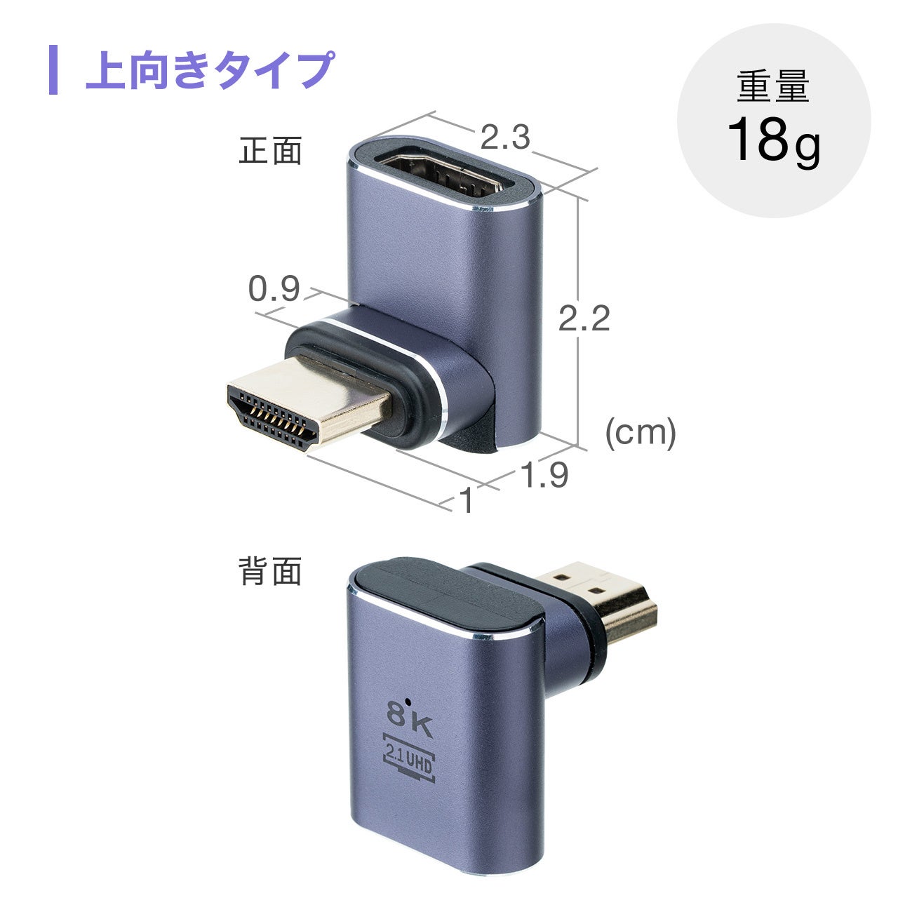 HDMIアダプタ 上向き マグネット着脱 8K 4K/60Hz eARC 対応 変換 コネクタ 90度 L字 L型 延長 配線 テレビ サウンドバー ゲーム 48Gbps ハイスピード