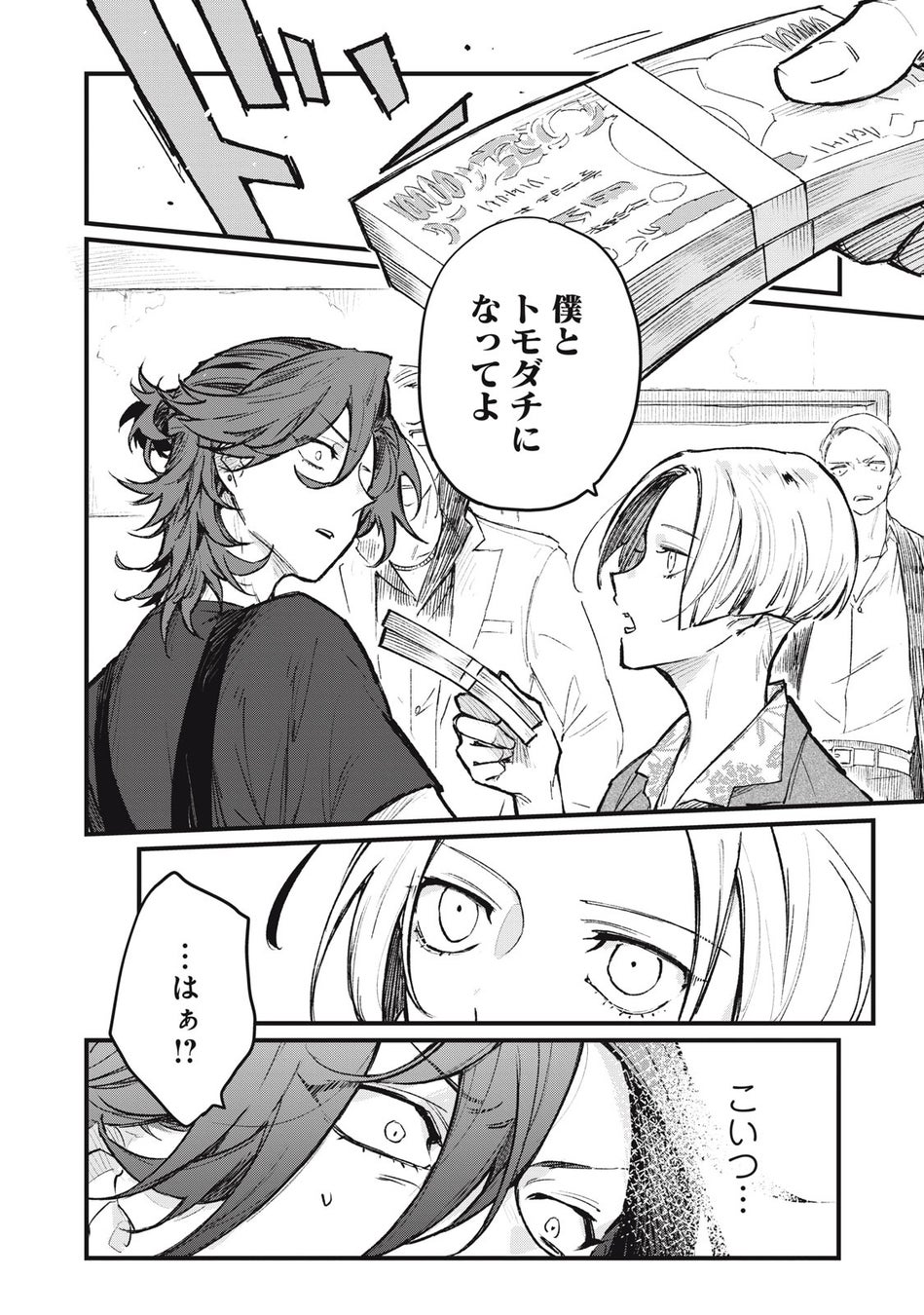 行方不明の弟を探す青年・スズは、ヤクザに絡まれたところをミステリアスな美少年・ハナに助けられる。