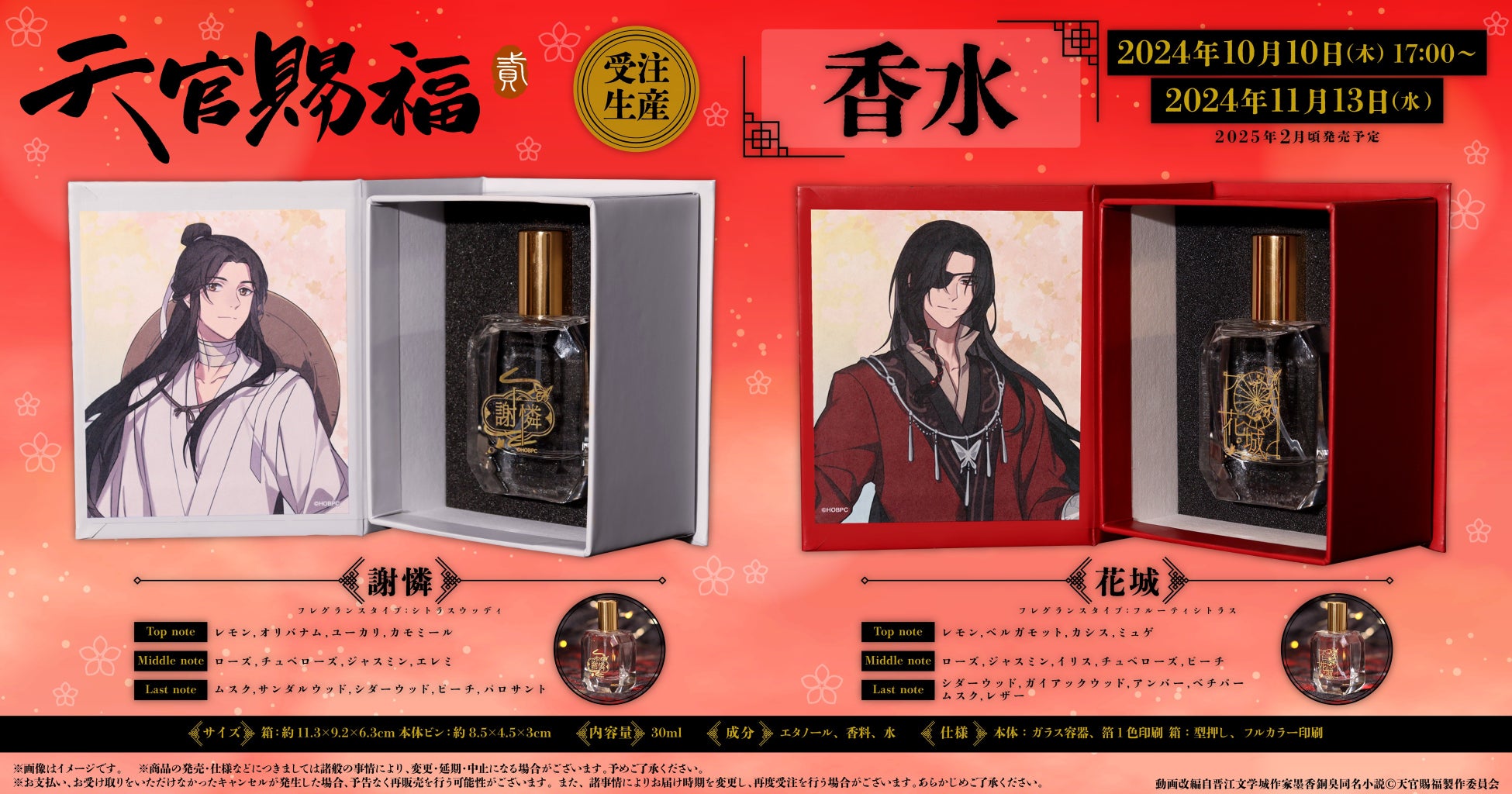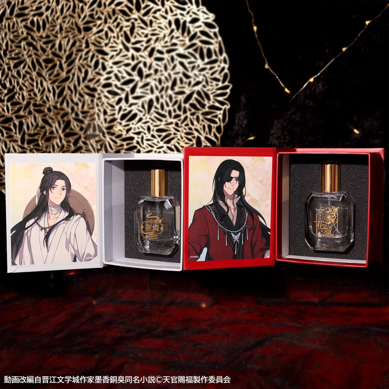 謝憐、花城をそれぞれ二人をイメージした香水が登場。