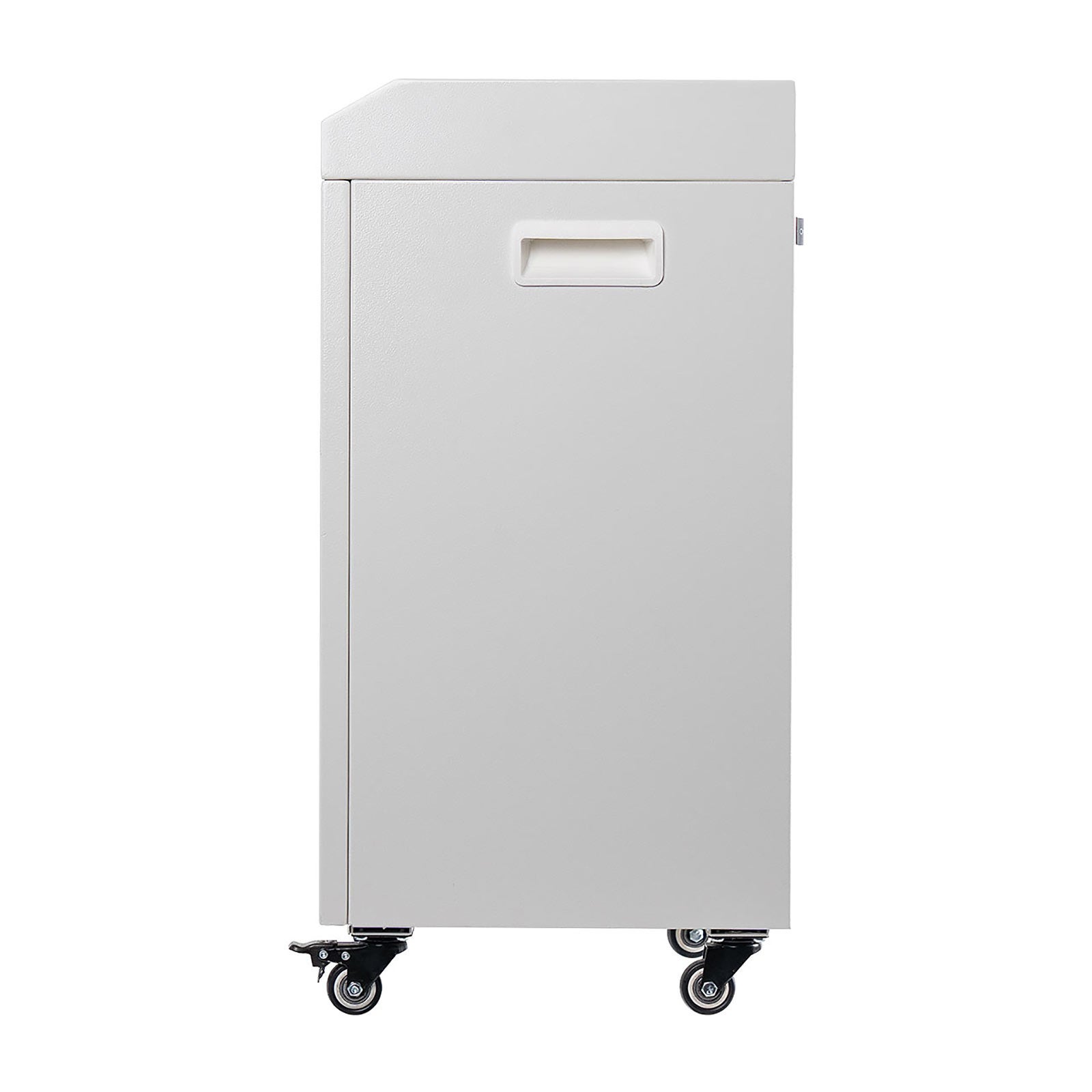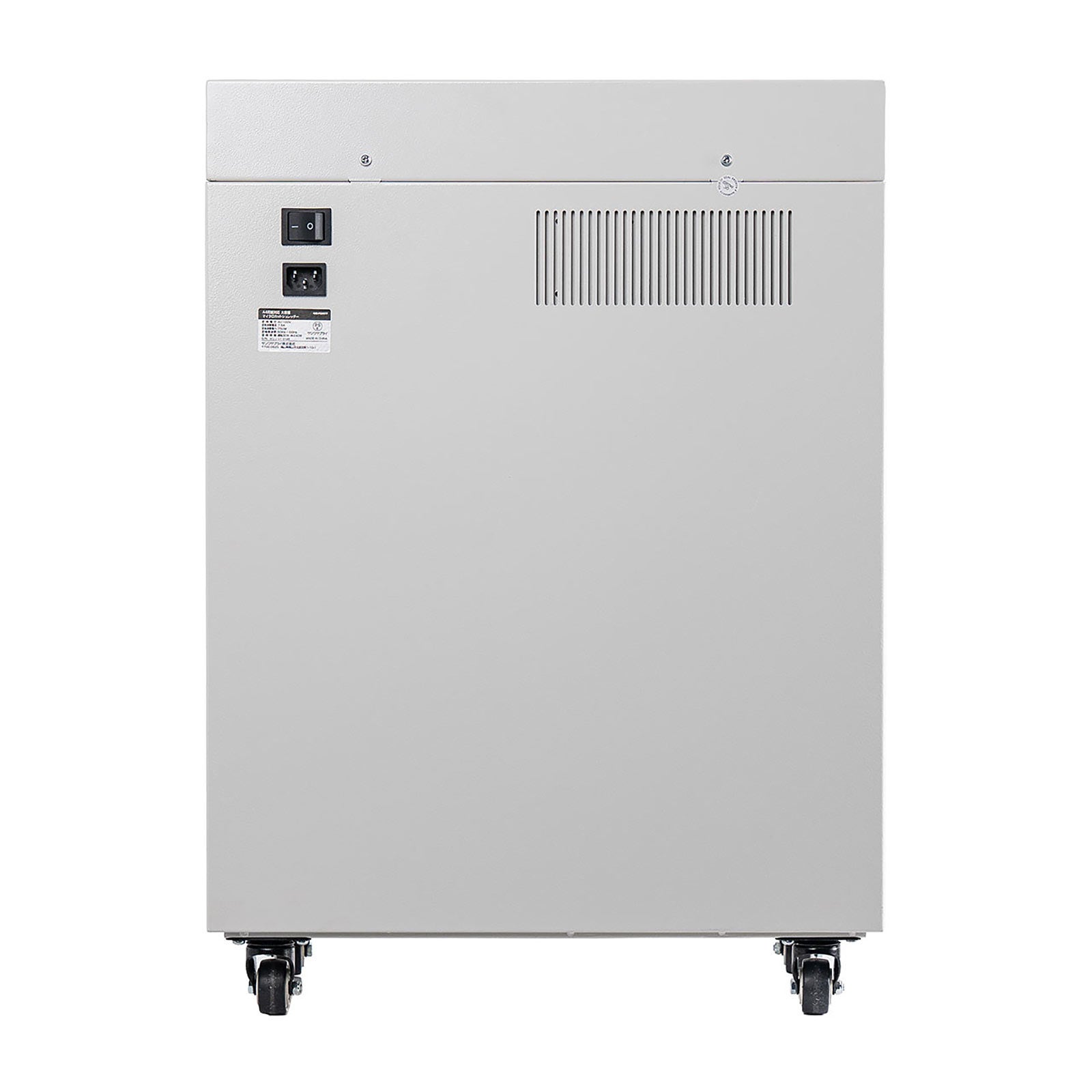 40Lの大容量ダストボックスを搭載。マイクロカットにより細断くずがかさばりにくく、ゴミ捨て回数を大幅に削減します。前面ドアから引き出せる構造で、設置したままスムーズに廃棄可能。満杯センサーLEDも備え、管理の手間も軽減します。