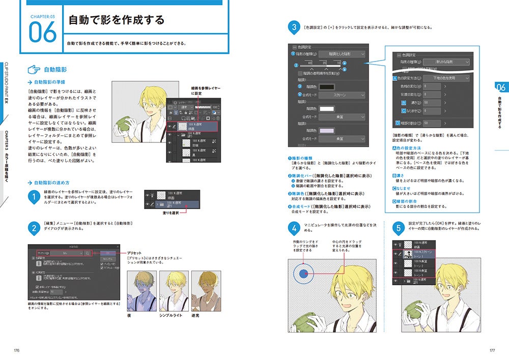自動陰影や強化された3D機能など、Ver.3.0にも搭載されている便利な機能を活用した実践的なテクニックも多数掲載しています。