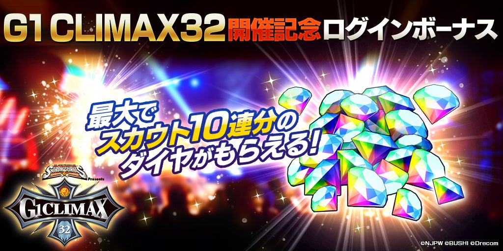 - G1 CLIMAX 32 開催記念として、最大1,500ダイヤ(10連スカウト1回分)が獲得できる期間限定ログインボーナスが開催中!