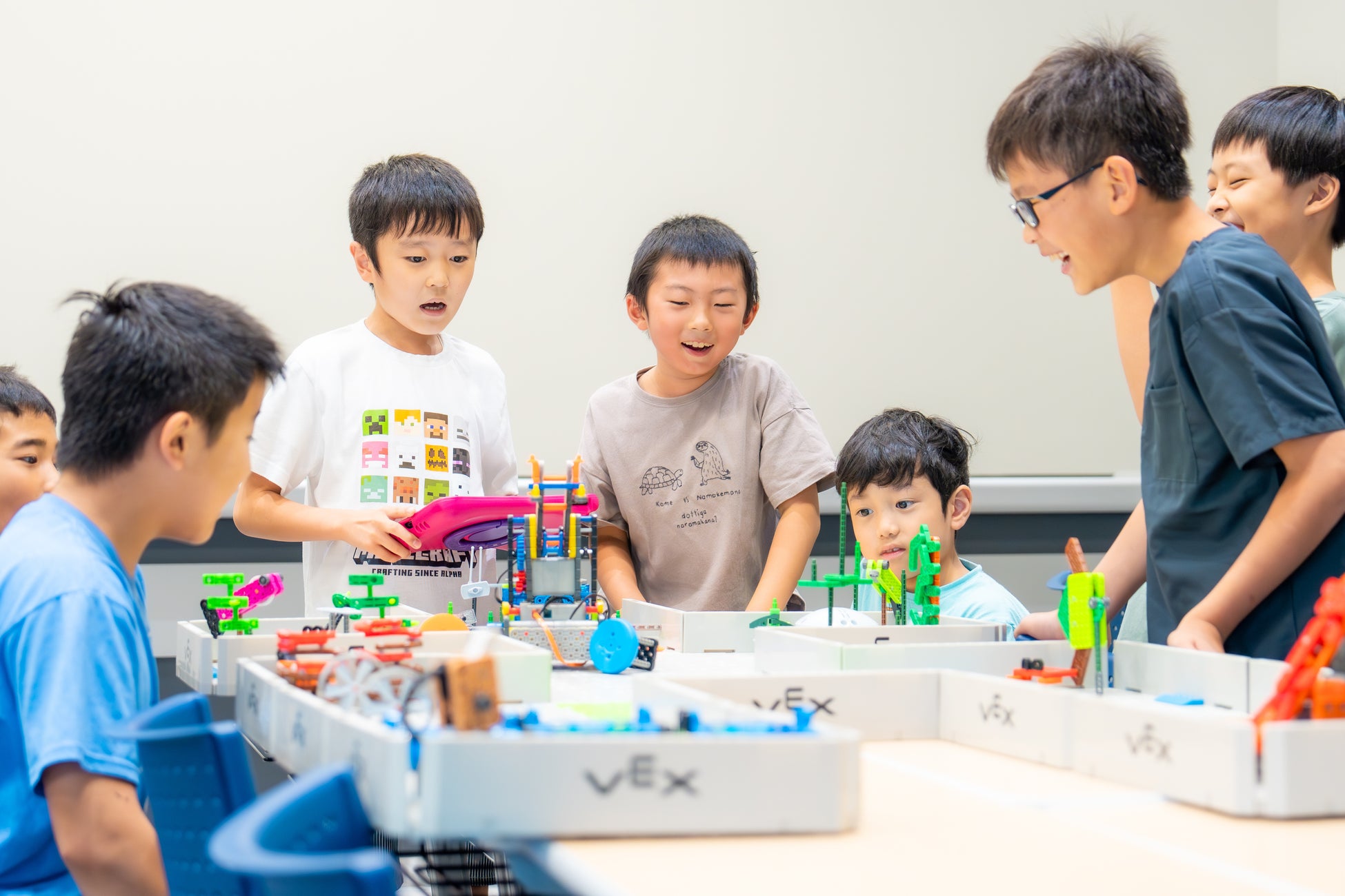 世界で広く使われているロボットプログラミング教材のVEXを使用し、PCの操作、プログラミングやロボットの組立てなどを英語で学習します。基礎学習のほか、最終日の競技会に向けて、パートナーと協力して、ゲームミッション達成のためのロボットをデザイン、製作します。将来のエンジニアを育む英語でのプログラミング力、エンジニア知識を学べる毎回大好評のコースです。