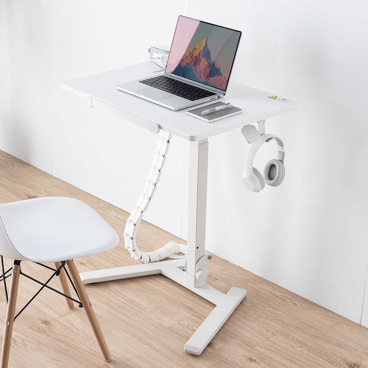 スタンディングデスク 昇降デスク ガス圧デスク 折りたたみテーブル 完成品出荷 落下防止ストッパー 天板角度調整可能 無段階調節 フック付き 薄さ15cm ホワイト