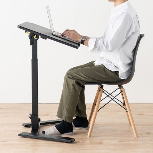 ・高さ無段階調整+天板90°チルトで姿勢にフィット