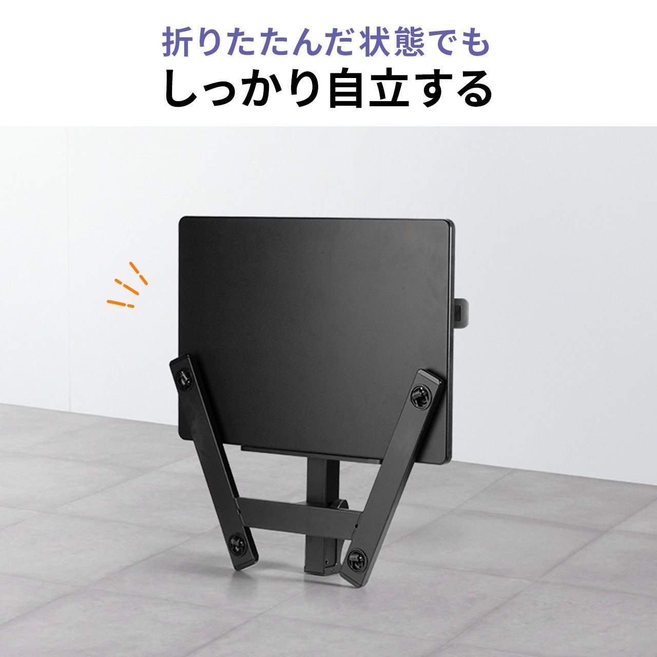 組み立て不要で届いてすぐ使える、ガス圧式で高さ・角度を無段階調整できる薄型折りたたみスタンディングデスク
