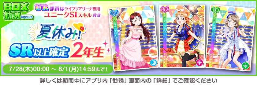 株式会社ブシロード(本社:東京都中野区、代表取締役社長:木谷高明)は、KLab株式会社(本社:東京都港区、代表取締役社長:森田英克)と共同開発いたしましたスマートフォン向けアプリ『ラブライブ!スクールアイドルフェスティバル』(以下、スクフェス) において2022スクフェス夏休みキャンペーン 第2弾の開催をお知らせいたします。