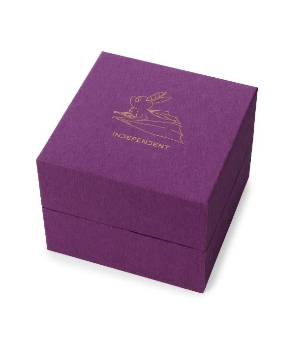 また、BOXは紫地にゴールドカラーで時計裏ふたと同じ鼻息丸を大きくデザイン。