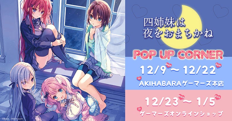 株式会社カードラボ ゲーマーズ(本社:東京都豊島区、https://www.gamers.co.jp/ 以下ゲーマーズ)は、2024年12月9日(月)より『四姉妹は夜をおまちかね』POP UP CORNER を開催することをお知らせいたします。