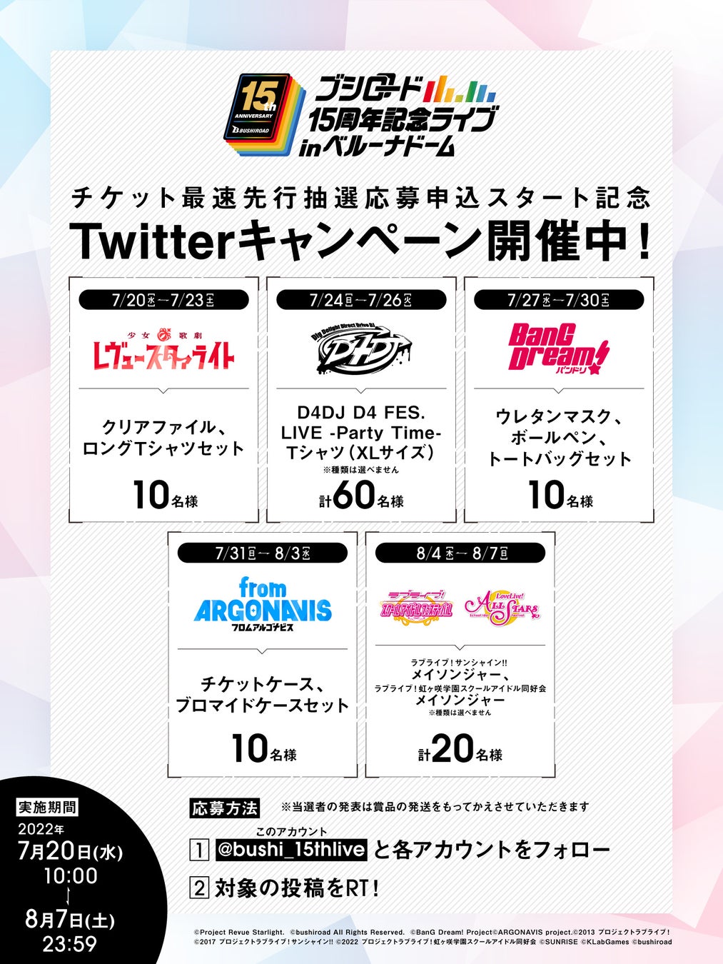 ◇「#ブシロード15周年記念ライブ チケット最速先行抽選応募申込スタート記念Twitterキャンペーン」実施中!