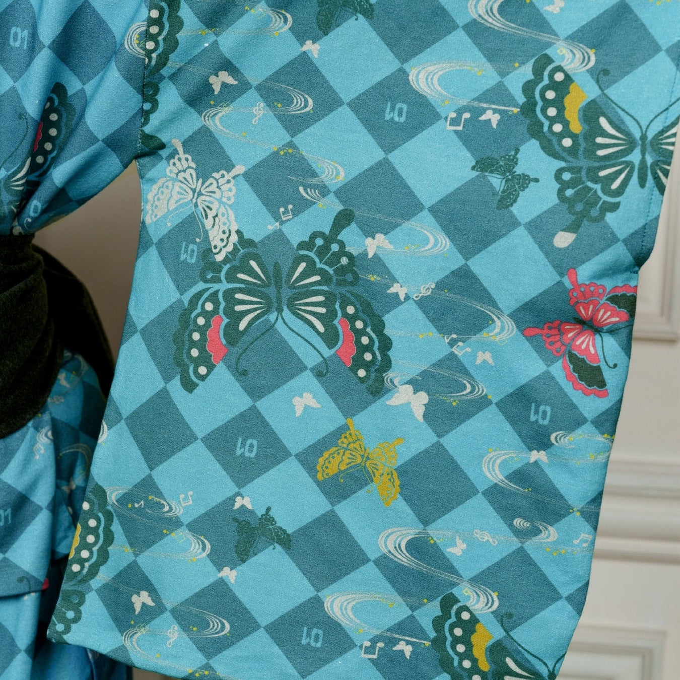 市松模様と長寿、不死の象徴として武士にも好まれた蝶柄をデザイン。