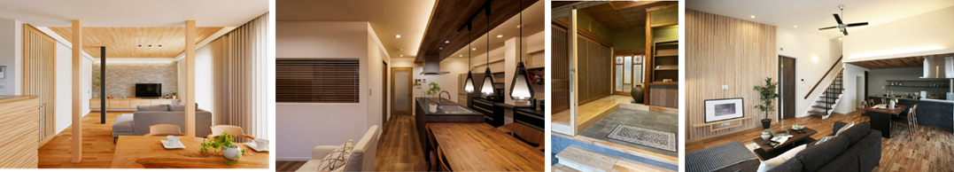 左から順に、総合部門 グランド【リファイン浦安 株式会社アリヴァ】/総合部門 ミドル【杜プラス 株式会社協和木材】/総合部門 セレクト【リファイン岡崎 株式会社丸豊住宅】/建替部門【株式会社ナカタ】