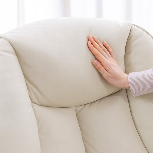 ・肉厚クッションと連動する肘掛けが体を優しく包み込みます。