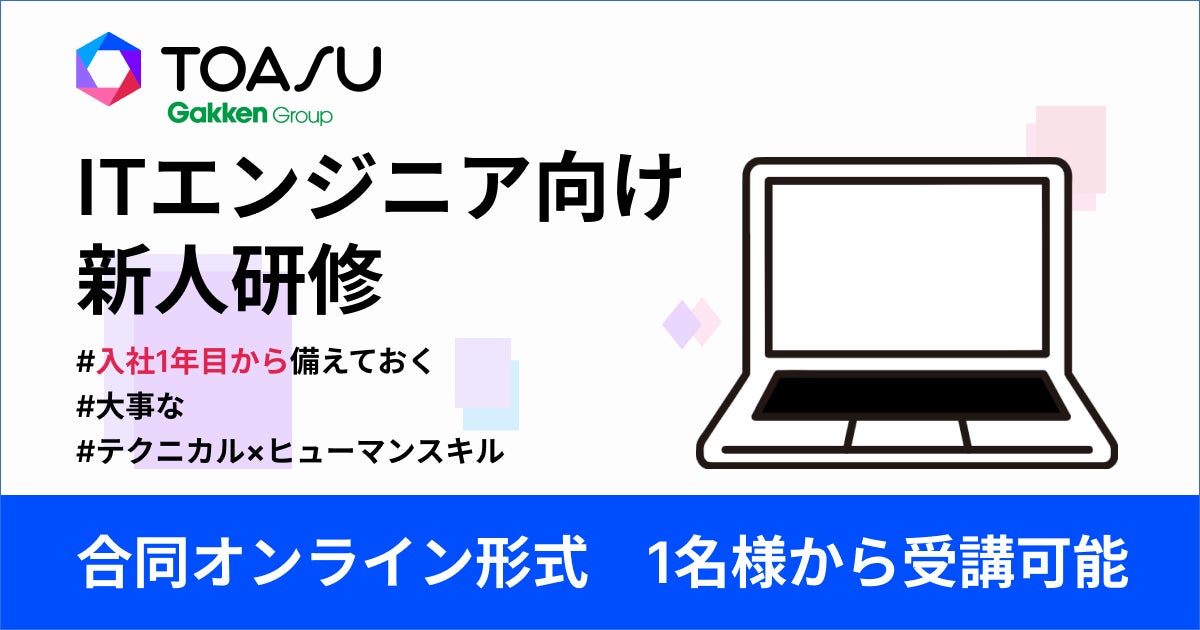 【2024年度IT新人研修】1名から参加可能! 人材開発支援助成金の利用可能! 株式会社TOASUが新人をヒューマンスキルの高い即戦力IT人材に変える「ITエンジニア向け新人研修」を4月に開講。