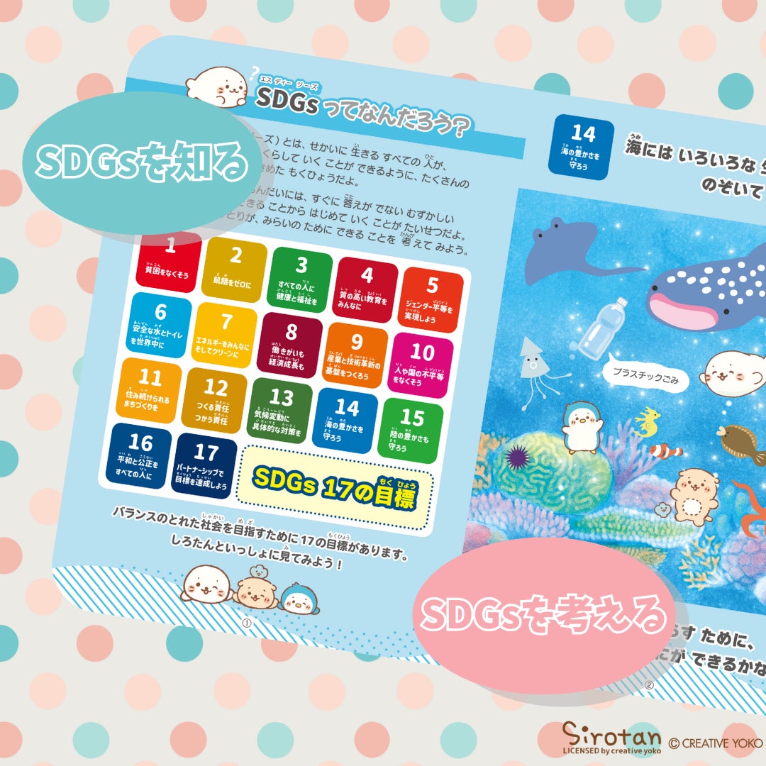しろたんのイラストを豊富に使用し、しろたんと一緒にSDGsについて勉強し、考えることができる内容となっています。