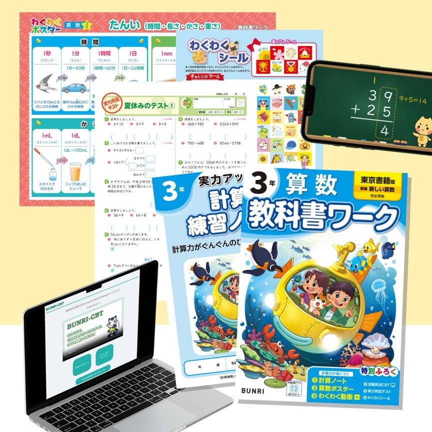 2024年度からは、単元の理解に役立つ「わくわく動画」と、パソコン上でのテストで力試しができる「自動採点CBT」が登場し、より充実した内容となっています。