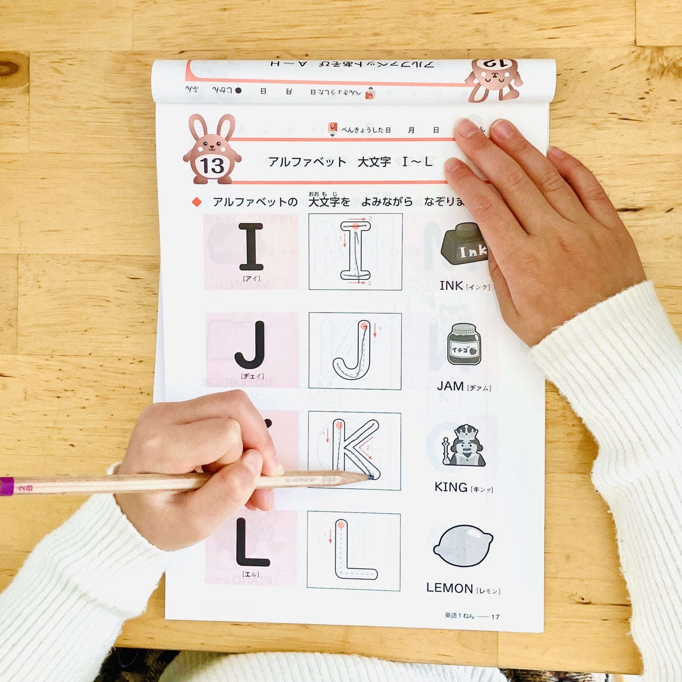 アルファベットから会話練習まで学習することができる学年別英語ドリルが今年もついています。