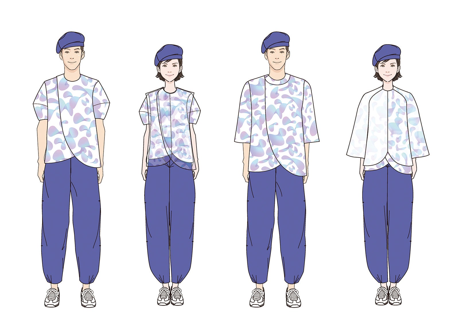 また、パナソニックグループは「物と心が共に豊かな理想の社会の実現」に向けて、喫緊の社会課題である地球環境問題の解決のために長期環境ビジョン「Panasonic GREEN IMPACT」を掲げており、ユニフォームでも、環境に配慮した素材を使用します。会期終了後には回収したユニフォームのアップサイクルも予定しており、制作時から再利用を想定した循環型のユニフォームとなっています。