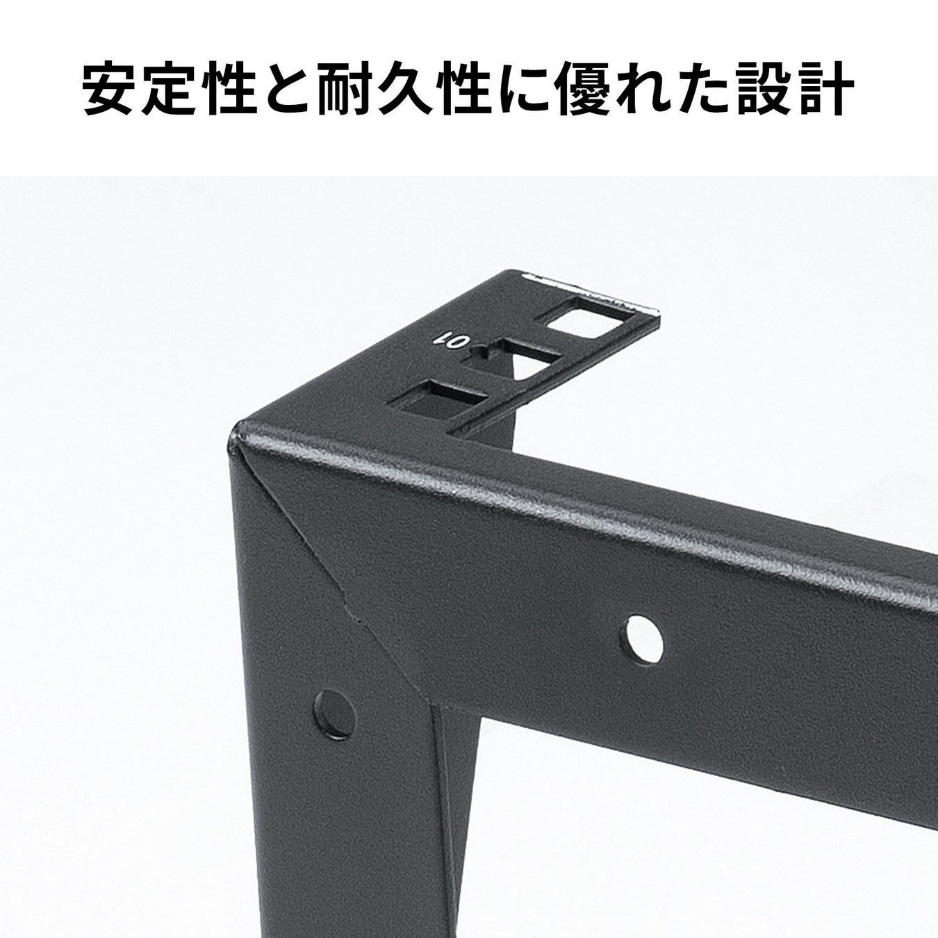 スチール製ブラケットで耐久性が高く、オフィスやサーバールームでも安心して長期間使用できます。