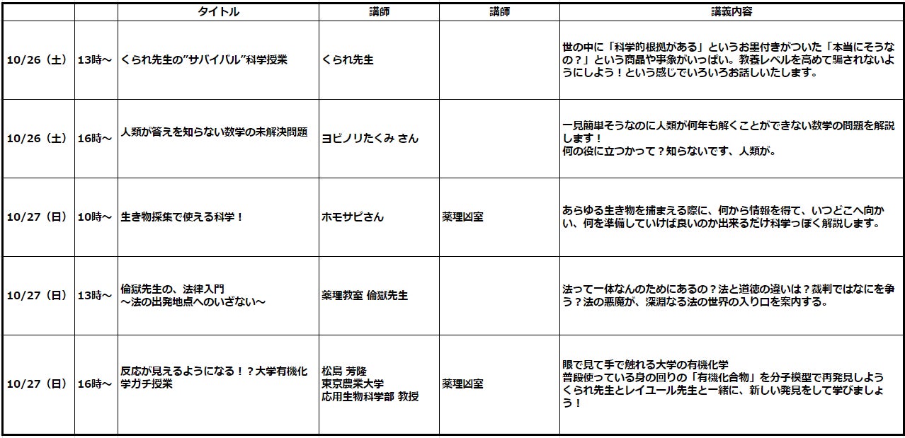 ① 13:00~14:30 くられ先生の”サバイバル”科学授業
