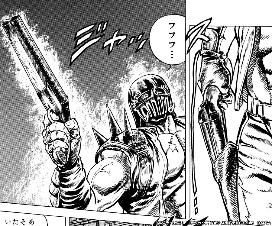 著作権表記:©武論尊・原哲夫/コアミックス 1983 版権許諾証GC-218 ©SEGA
