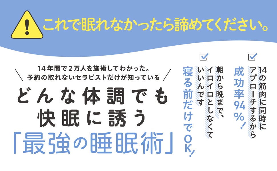 「疲れるほど眠れる」は大間違い!? 1日中あれこれしなくても、14の筋肉にいっぺんにアプローチするこの方法なら、高確率で睡眠難民から卒業できます!