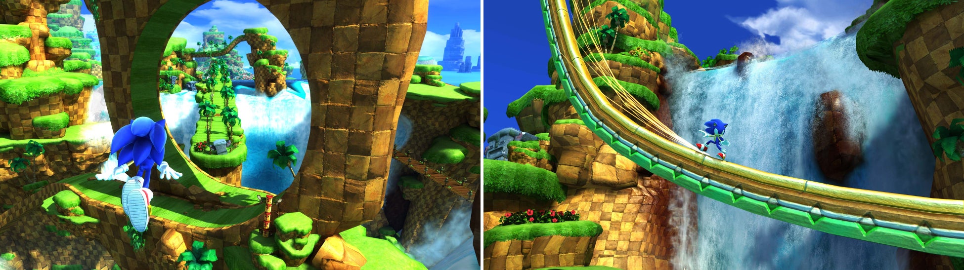 ソニックシリーズ第1作『ソニック・ザ・ヘッジホッグ』で登場した2Dスタイルソニックの代表的なステージ。きれいになったビジュアルで、懐かしい「グリーンヒル」を楽しもう!