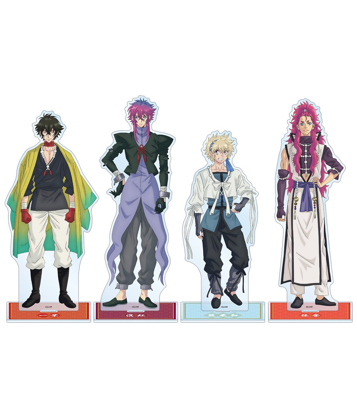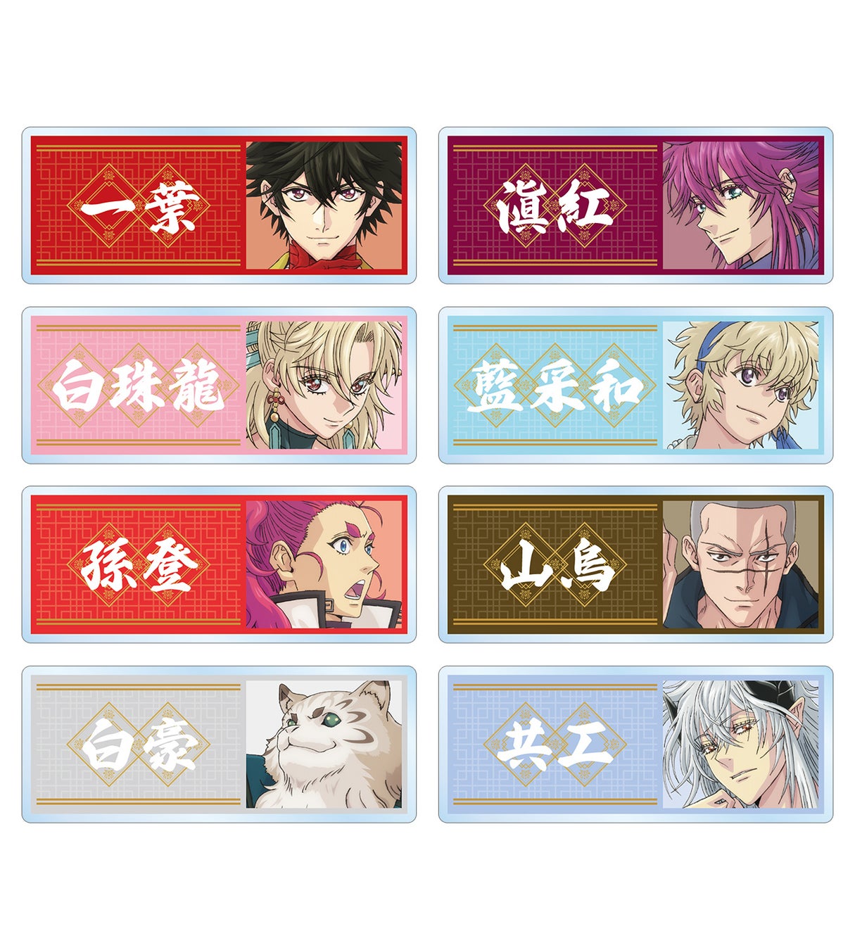 トレーディング缶バッジ(単品/BOX)、トレーディングアクリルカード(単品/BOX)、トレーディングアクリルネームプレート(単品/BOX)、BIGアクリルスタンド(一葉/滇紅/藍采和/孫登)、マルチデスクマットの5アイテムが販売されます。