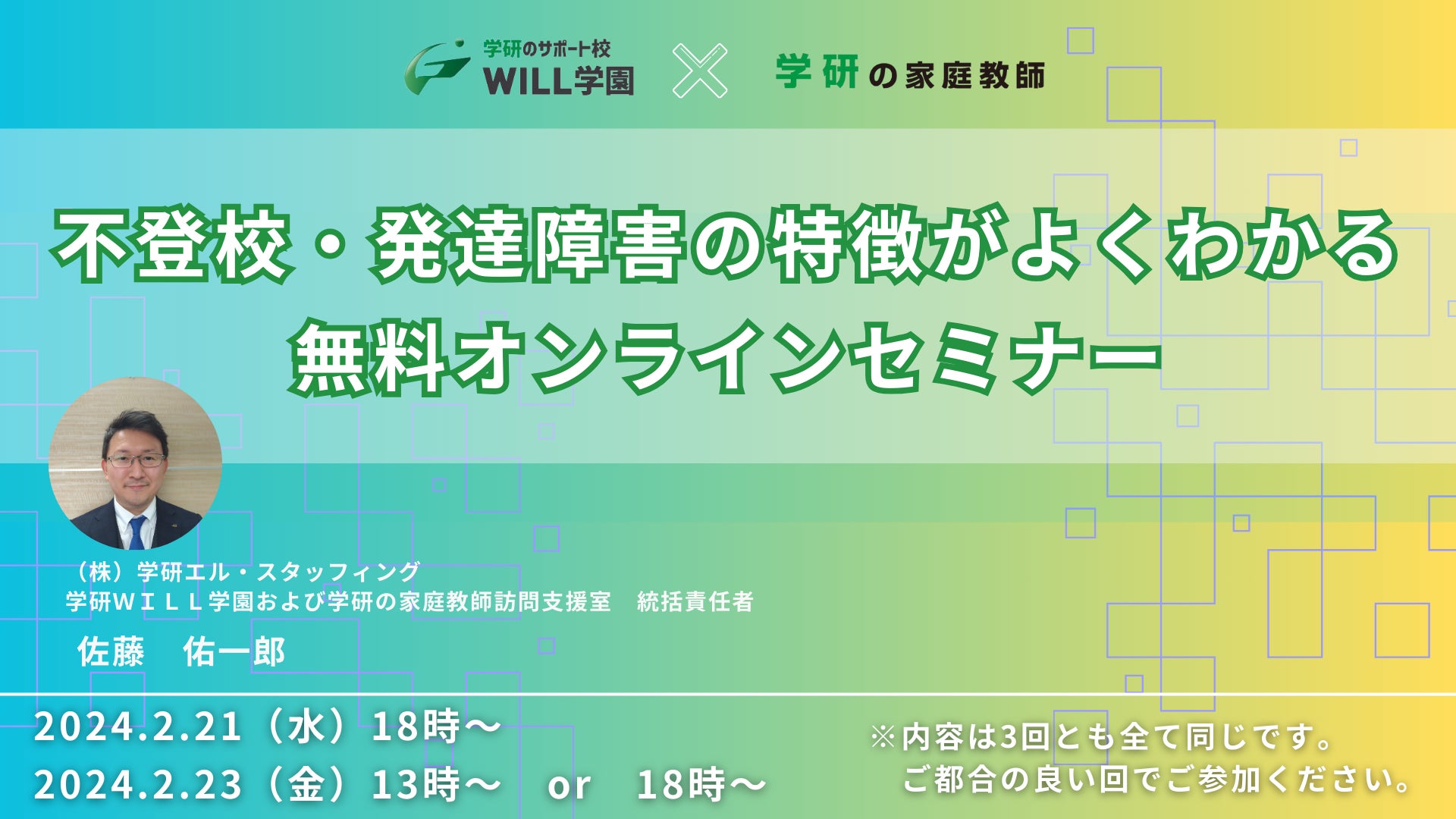 学研のWILL学園が「不登校・発達障害の特徴がよくわかるオンラインセミナー」 を2月21日(水)・2月23日(金)に、オンラインにて開催!