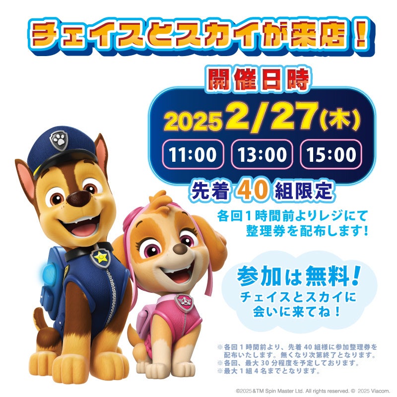 2/27にはチェイスとスカイが会場に遊びに来て、一緒に写真を撮れるイベントも開催!お楽しみに!