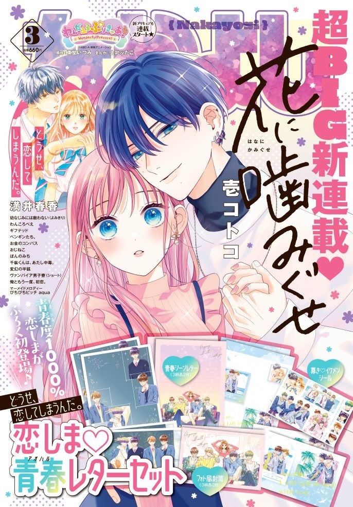 「なかよし」3月号は、青春シーンをイメージ★超エモかわいい『どうせ、恋してしまうんだ。』レターセットがふろくに登場! 表紙&巻頭カラーは新連載『花に噛みぐせ』