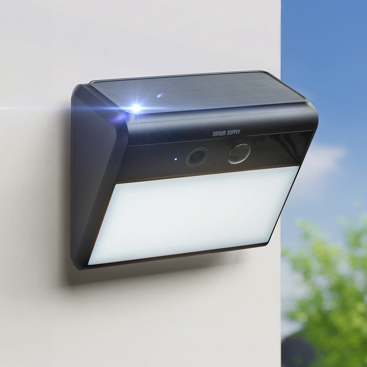 センサーライトと防犯カメラを1台に集約、スマホ連動のソーラー屋外カメラを発売
