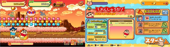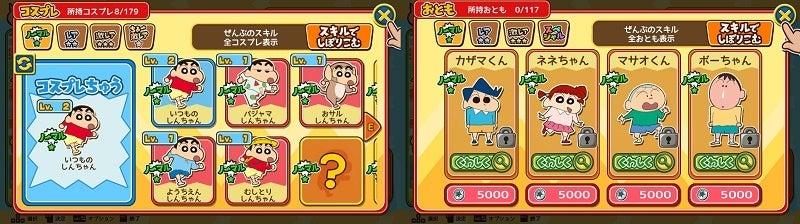 コスチュームを着たしんちゃんや、心強いおともをたくさん集めましょう!