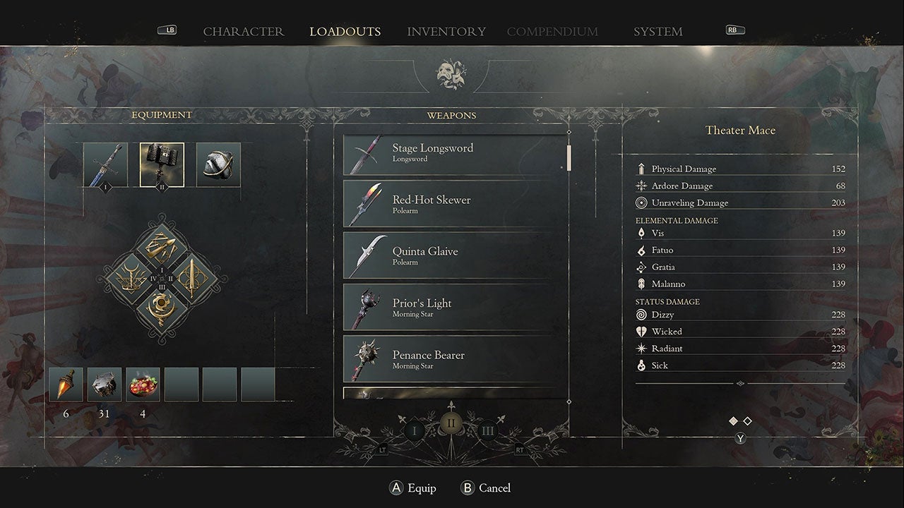 仮面は3つまでセットすることが可能で、すぐに切り替えられます。仮面には武器や装備だけでなくステータスも記録されるため、役割が大きく異なる別のプレイスタイルにいつでも変更できます。