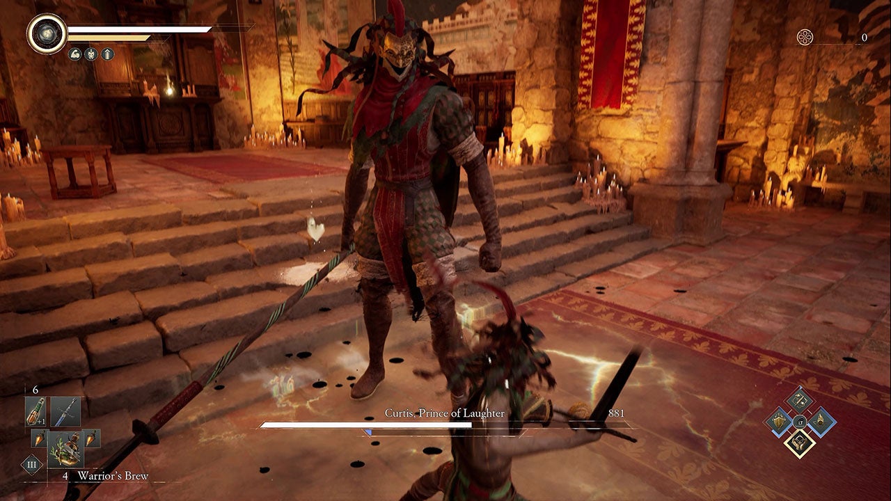 武器は8つの異なる種類があり、120を超えるさまざまな能力・見た目のものが用意されています。敵の攻撃をはねのける盾は本作にはないため、ステップやパリィを駆使しつつ攻撃を当てていく必要があります。敵の攻撃が終わるのを待つのではなく、受け流しつつ、攻撃を紡いでいくのが本作のアクションの特徴となっています。