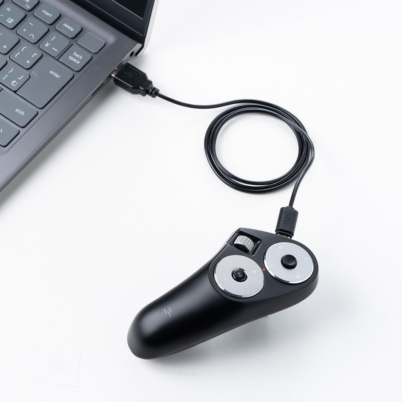 ●メディアコントロールボタン搭載なので、動画の入ったスライド操作にも最適です。