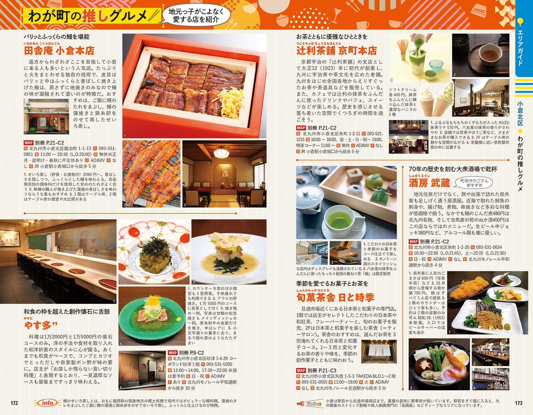 門司区、小倉北区、小倉南区、若松区、八幡東区、八幡西区、戸畑区の全7区をそれぞれ詳しく紹介。各区にゆかりのある特命大使が思い出とともにおすすめを提案します。また各区の推しグルメや、ディープなコラムまで読みどころ満点です。