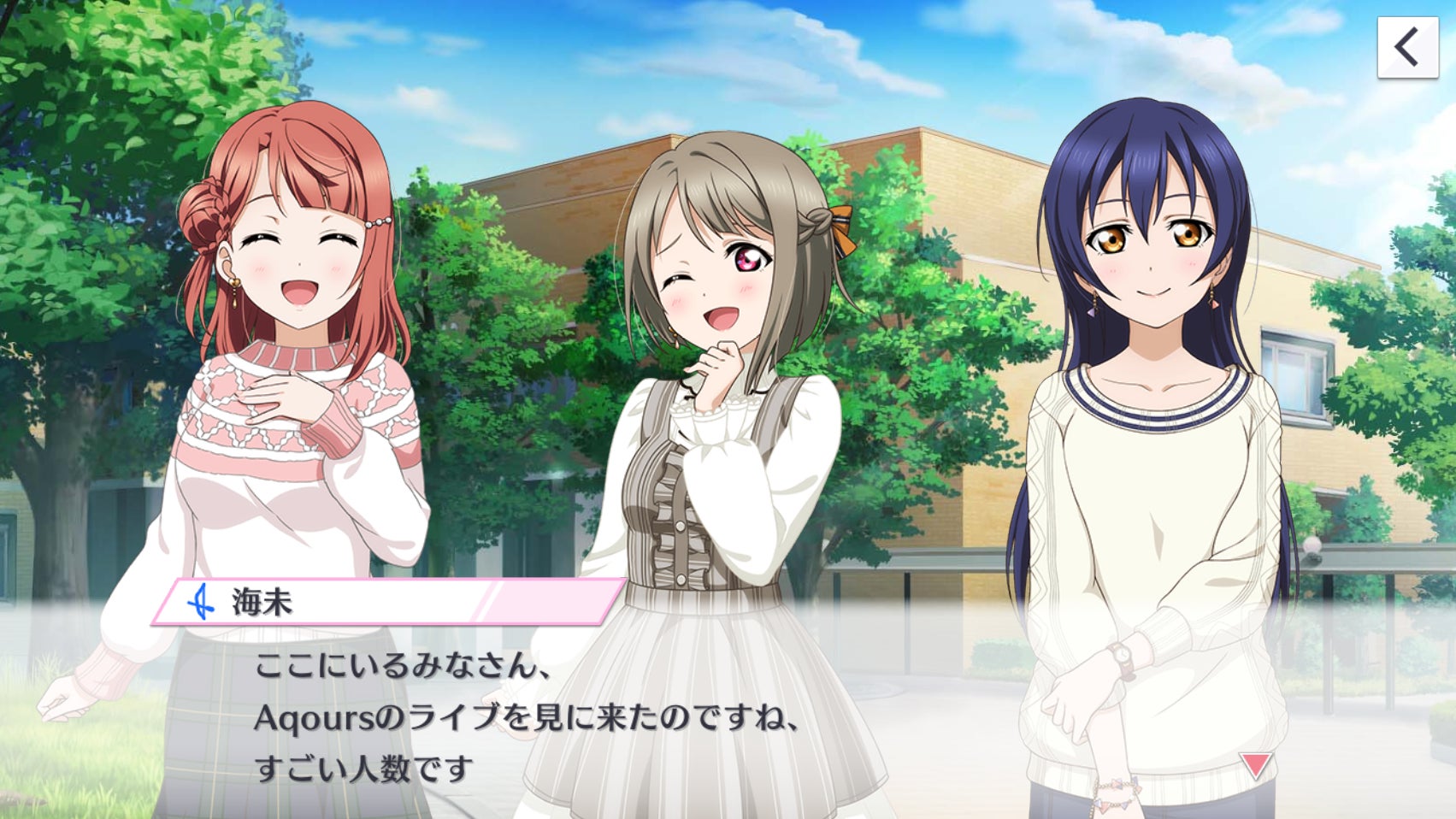 Aqoursのライブ会場に着いた一行は、すでに集まっているたくさんのAqoursファンを目にする。
