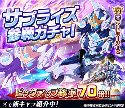 合同会社EXNOA(本社:東京都港区、CEO:東條 寛、URL:https://games.dmm.com/)が運営するDMM GAMESにおいて『神姫PROJECT』は、「アトラース-χ」が新登場する事を発表した。さらに「シャット」「チェンシー」が新衣装で登場し、復刻降臨戦イベント「鵺降臨戦」を開催する。