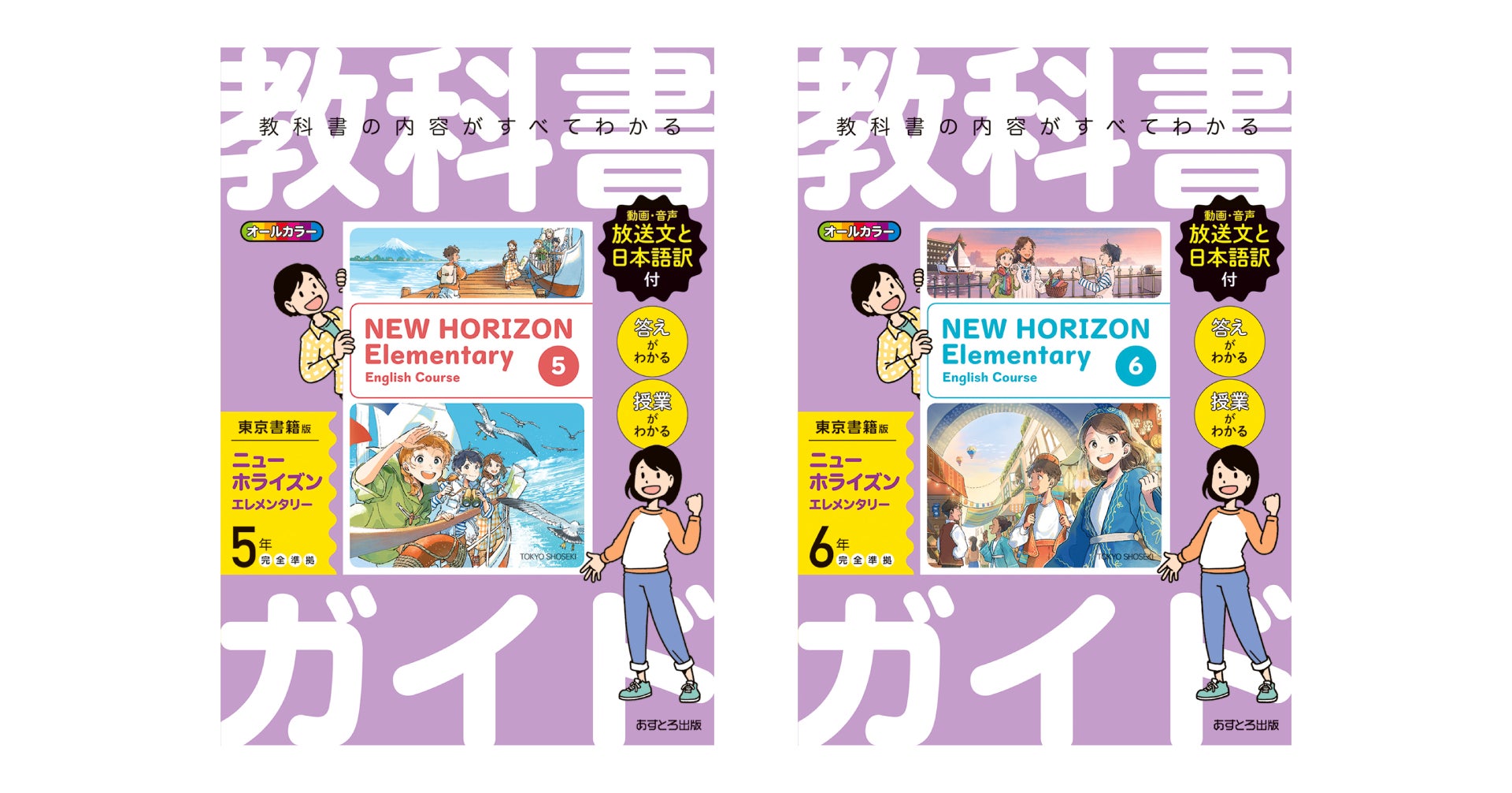 2024年度より、東京書籍㈱の英語教科書「NEW HORIZON Elementary English Course 5、6」に対応した『小学教科書ガイド』が初登場。