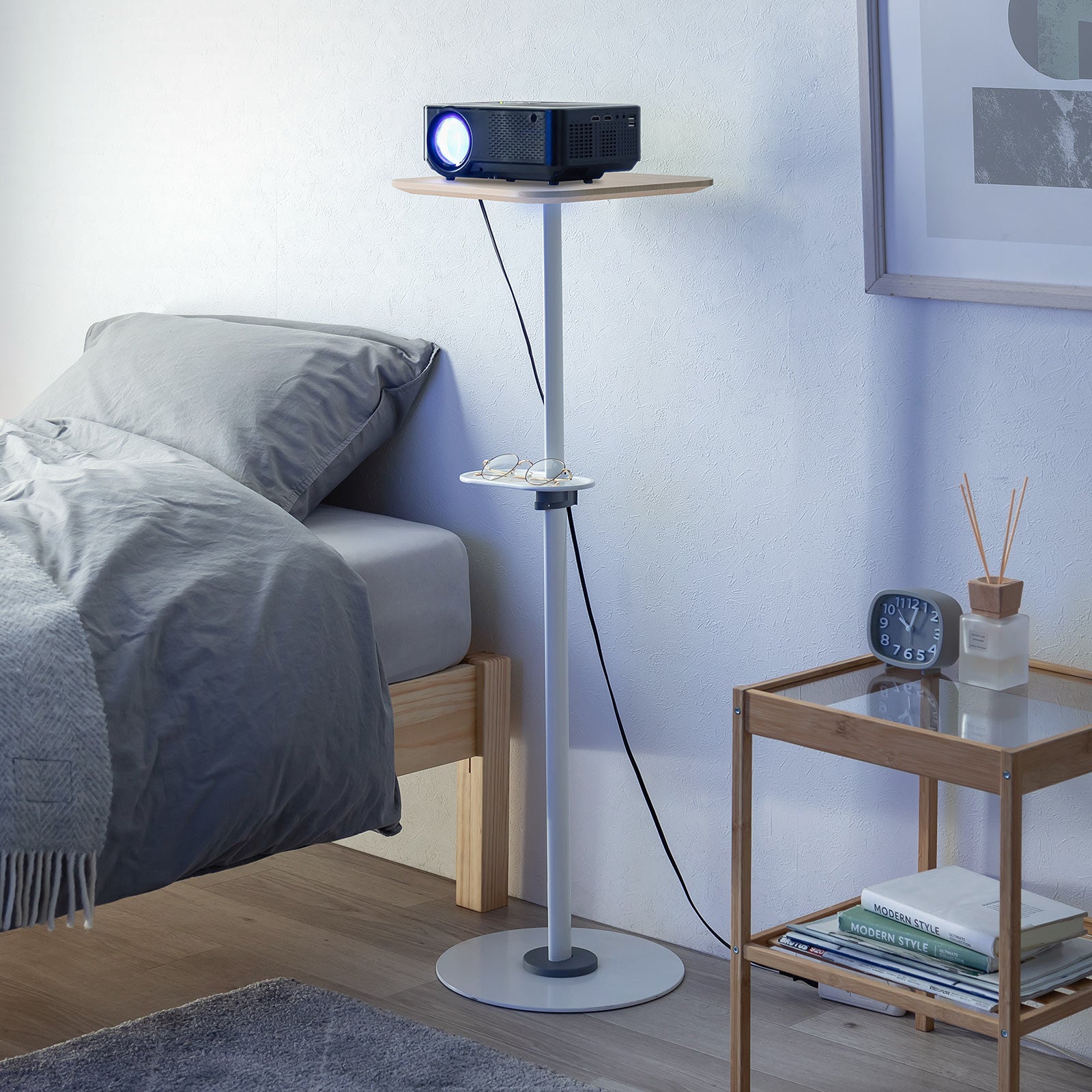 プロジェクター台 プロジェクタースタンド フロアスタンド高さ調整70~120cm トレイ付属 木目調天板