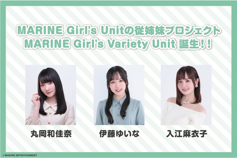 MARINE Girl’s Unitの従姉妹プロジェクトとしてMARINE Girl’s Variety Unit『Merry Fave』が始動!メンバーは丸岡和佳奈さん、伊藤ゆいなさん、入江麻衣子さんです。2024年10月20日(日)にアニメイト池袋本店B2Fにあるアニメイトシアターにてお披露目イベントを開催します。