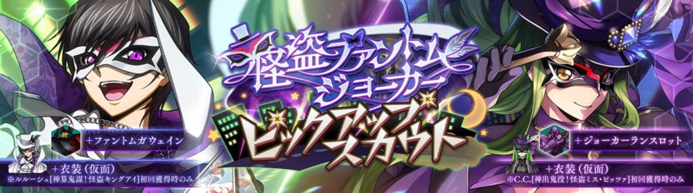 「怪盗ファントムジョーカー ピックアップスカウト」では新パイロット、★4ルルーシュ[神算鬼謀!怪盗キングアイ]と★4C.C.[神出鬼没!怪盗ミス・ピッツァ]が、