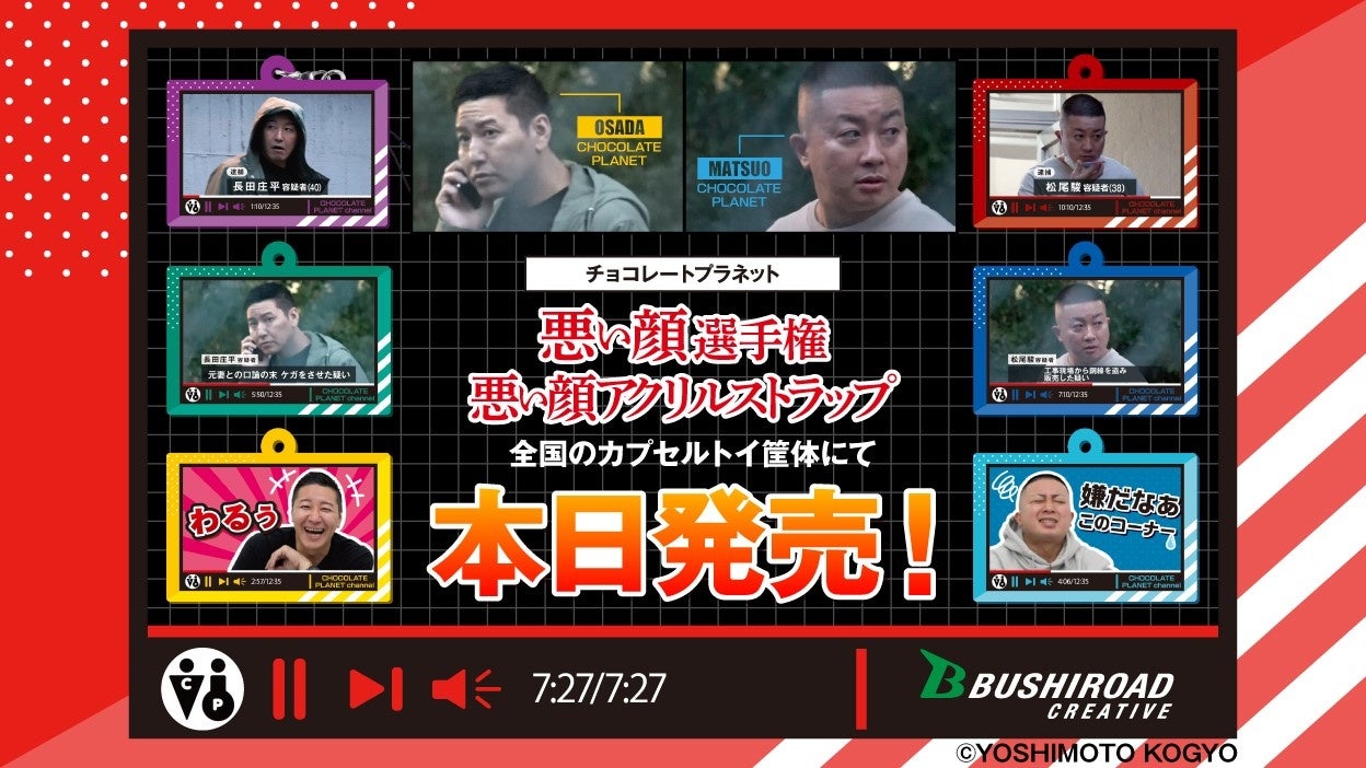 - 人気お笑いコンビ「チョコレートプラネット」のYouTubeチャンネルで話題の『悪い顔選手権』がアクリルストラップになって登場!