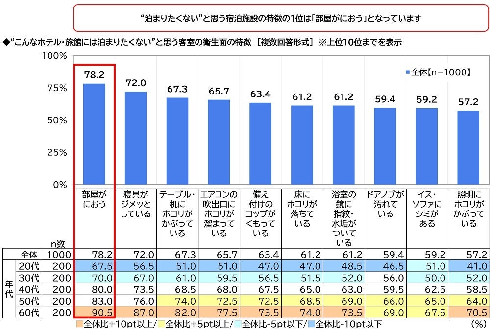 60代の91%が「部屋がにおう」ホテル・旅館には泊まりたくないと回答